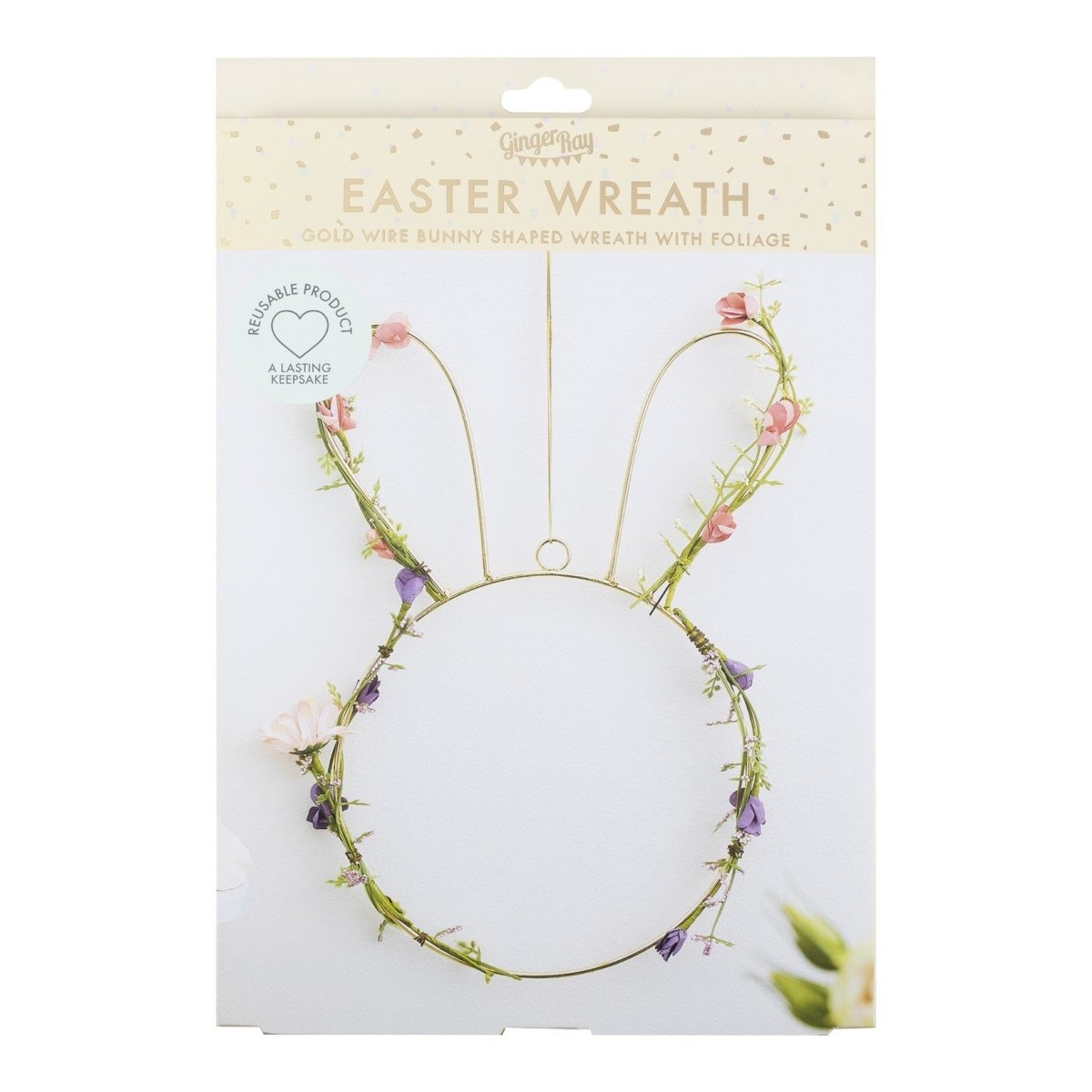 Een prachtige krans van gouddraad in de vorm van een konijntje, de perfecte paasdecoratie voor al uw seizoensgebonden uitstallingen.