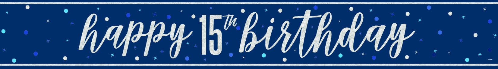 Happy Birthday Banner Blauw 15 Jaar 2,74m