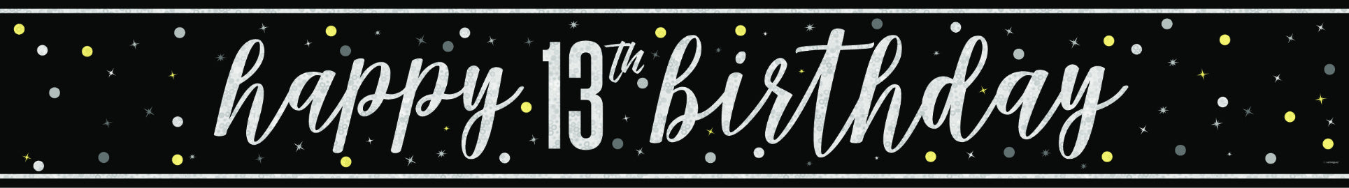 Happy Birthday Banner Zwart 13 Jaar 2,74m