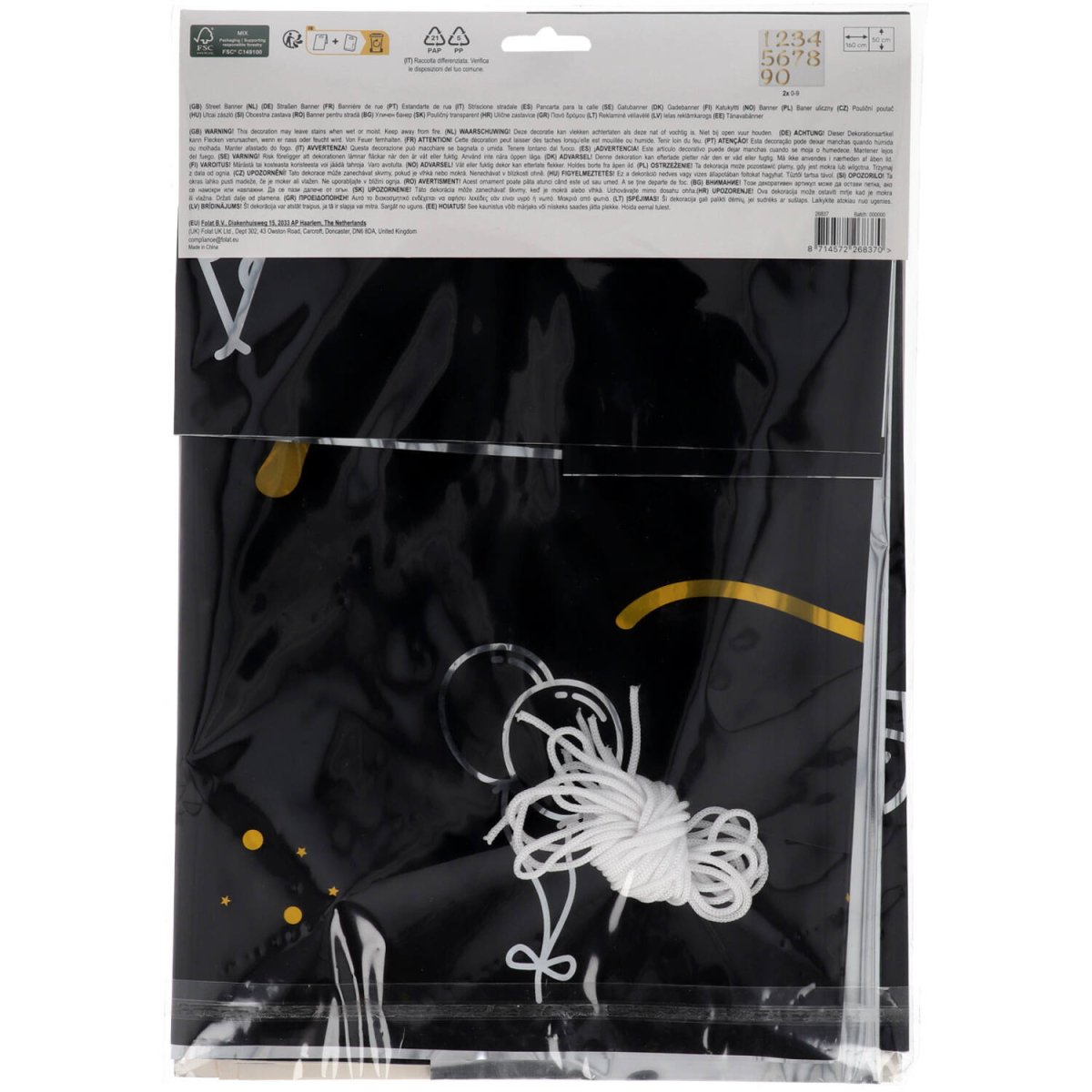 Er is er een jarig! Straatbanier - Shining Glam - 160 x 50 cm. Inhoud: 1 straatbanner. Bijvoorbeeld te gebruiken tijdens de volgende feestgelegenheid/feestgelegenheden: Verjaardag. Met deze straatbanner weet de hele buurt dat er iemand jarig is. Op de banier staan de woorden "HAPPY" en "BIRTHDAY" gedrukt in glanzend goud met daaromheen feestsymbolen in glanzend zilver. Tussen de woorden kan de leeftijd geplakt worden met de bijgeleverde glanzend gouden cijferstickers: 2x de cijfers 0 t/m 9 van 14,5 cm hoog. Op de vier hoeken zit een metalen klinknagel. 4 polyester witte touwtjes van ieder 1 meter worden meegeleverd. Deze hangdecoratie hoort bij de Shining Glam collectie van Folat. Dit artikel is gemaakt van plastic.