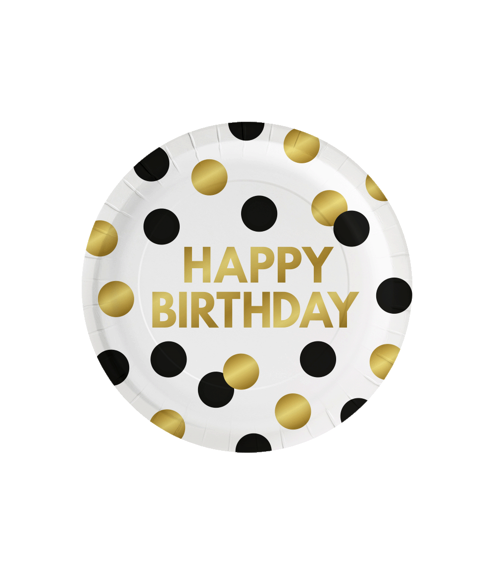 Happy Birthday Borden Zwart Goud Stippen 23cm 8st