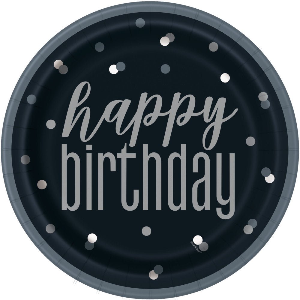 Happy Birthday Borden Zwart Stippen 22,2cm 8st
