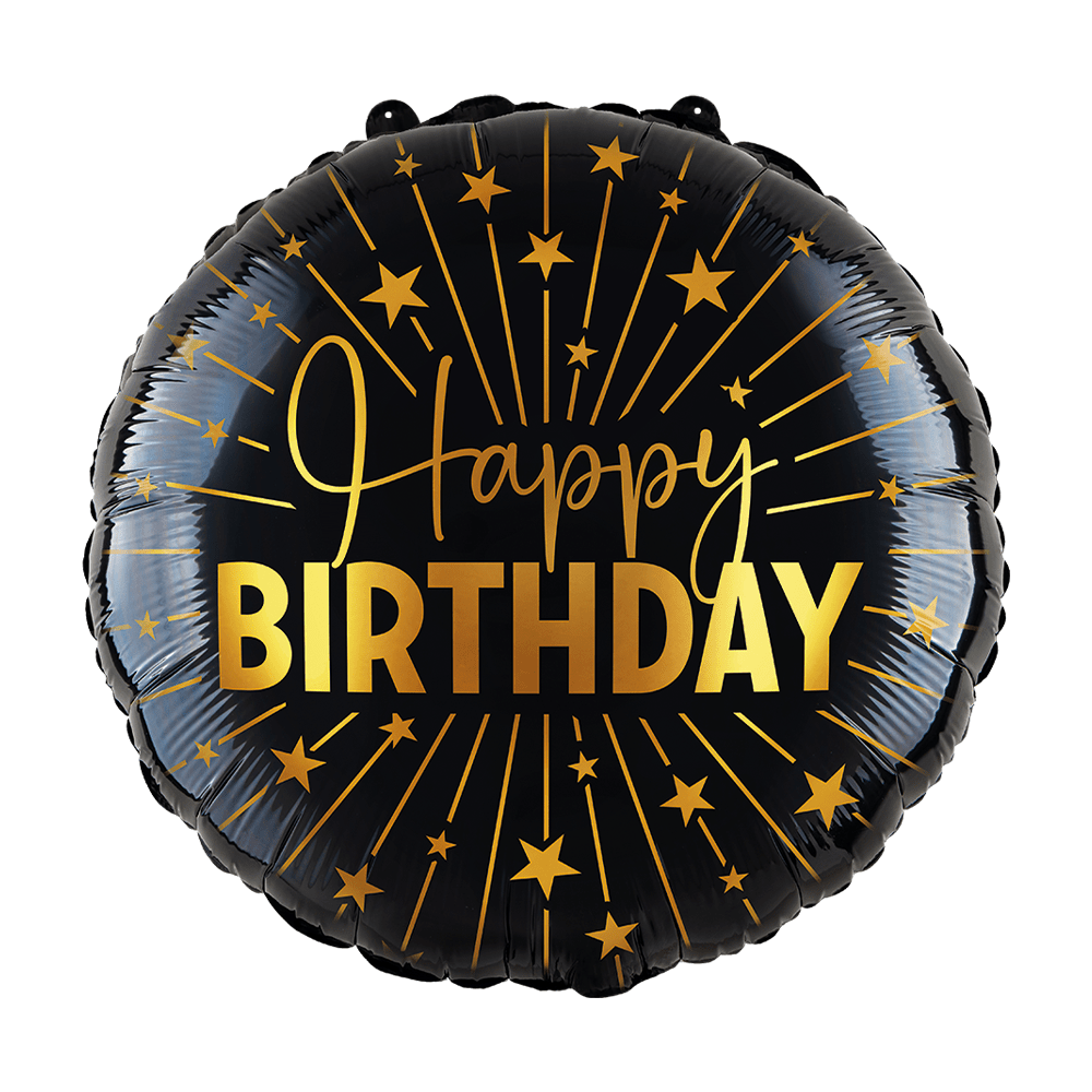 Happy Birthday Helium Ballon Zwart Goud Folie Leeg 45cm