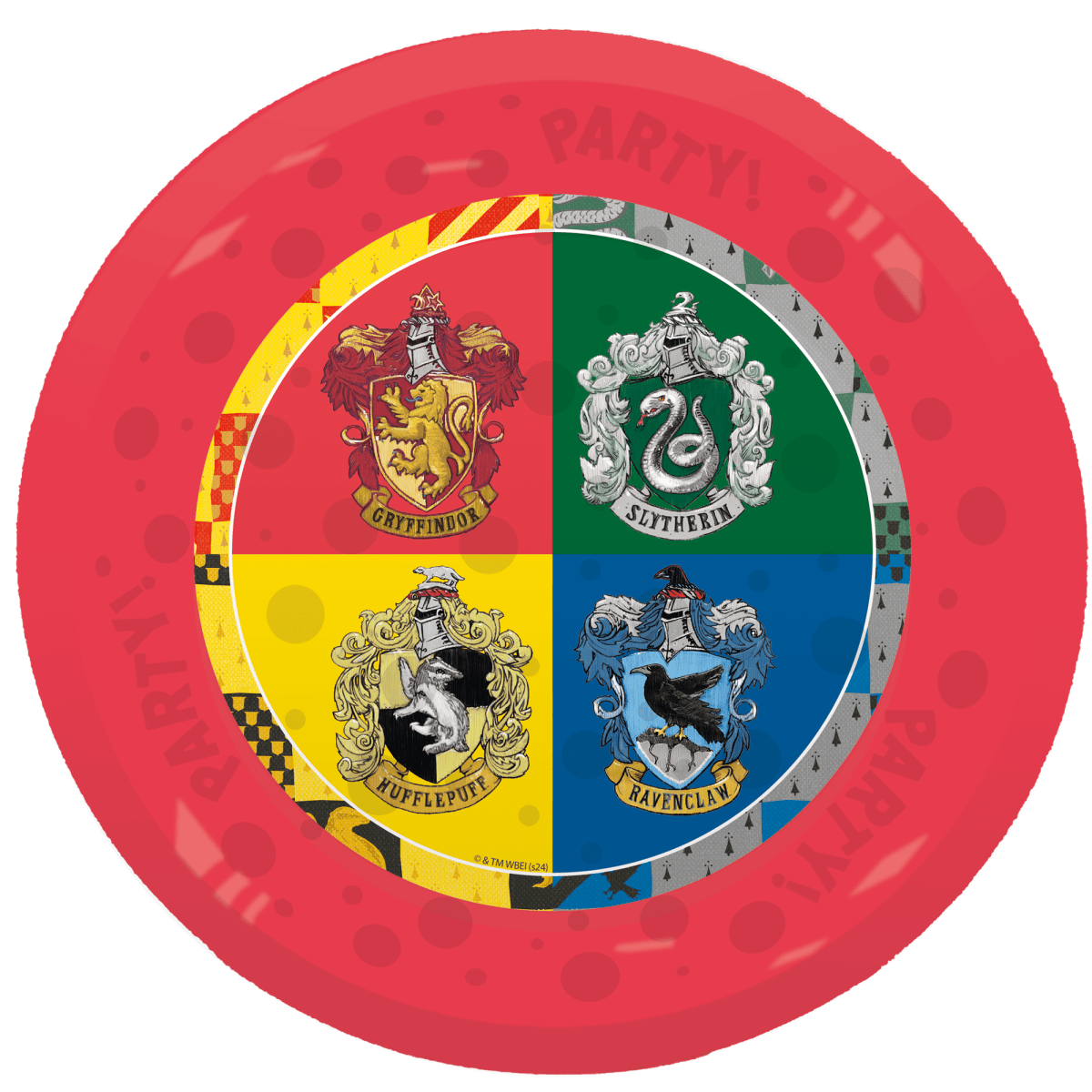 Maak elke maaltijd extra bijzonder met deze set van vier herbruikbare Harry Potter borden. Met een afmeting van 21 cm zijn ze ideaal voor ontbijt, lunch of diner. De borden zijn gemaakt van stevig kunststof, waardoor ze licht, duurzaam en gemakkelijk schoon te maken zijn. Perfect voor dagelijks gebruik én een must-have voor echte Harry Potter fans. De verpakking bevat 4 herbruikbare kunststof borden van 21 cm.