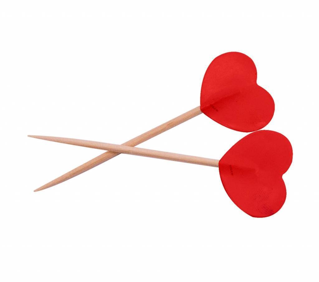 Prikkers rode hartjes - 50 stuks. Inhoud: 50 prikkers. Bijvoorbeeld te gebruiken tijdens de volgende feestgelegenheid/feestgelegenheden: Valentijnsdag, Bruiloft en Moederdag. Elke prikker is 6,5 cm groot. Deze prikkers zijn gemaakt van bamboe.