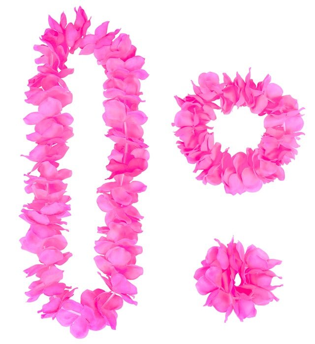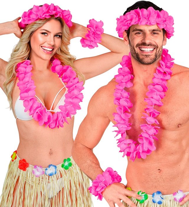 Complete Hawaiiset in rode kleur, ideaal voor een zomerse en feestelijke uitstraling. Deze set vormt een mooie aanvulling op diverse Hawaiikostuums en tropische outfits.