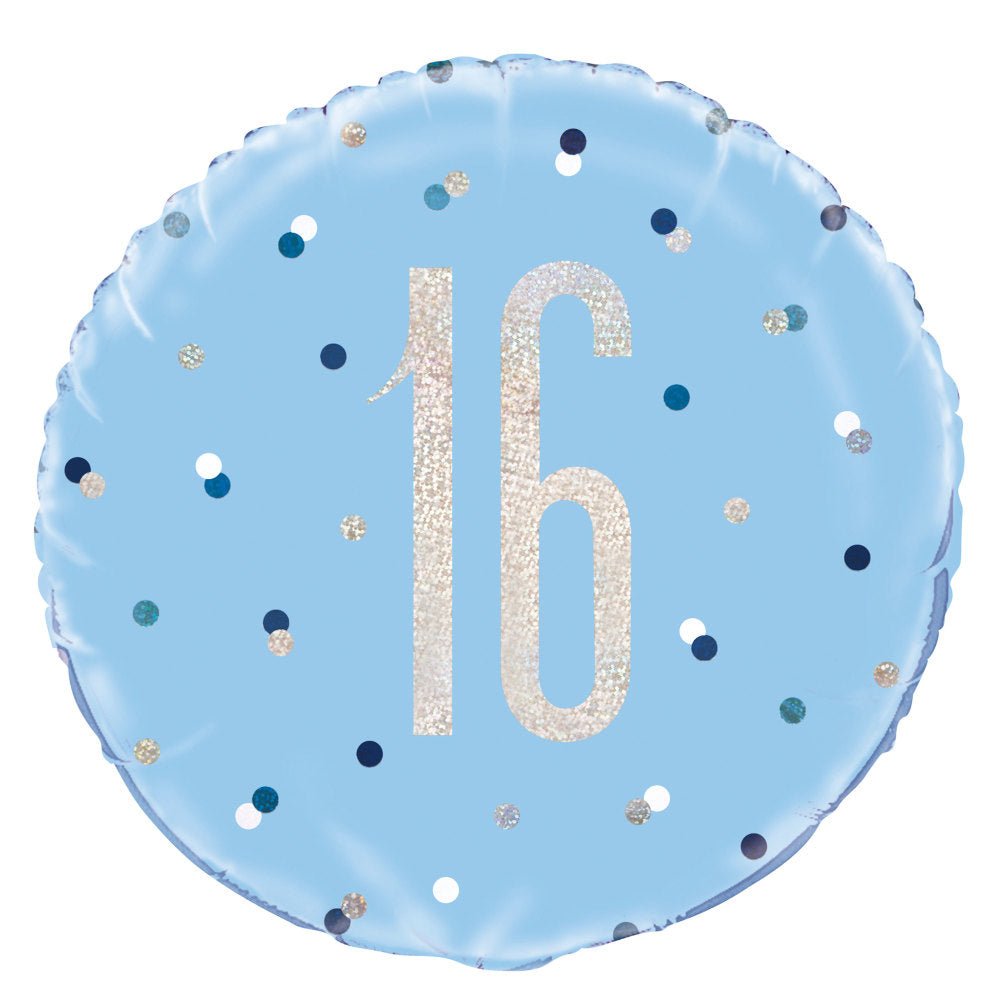 Helium Ballon 16 Jaar Blauw 45cm leeg