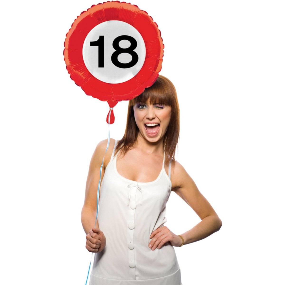 18 Jaar Folie/Helium Ballon Verkeersbord - 46 cm. Inhoud: 1 folieballon. Kleur: Rood. Bijvoorbeeld te gebruiken tijdens de volgende feestgelegenheid/feestgelegenheden: Verjaardag, Jubileum en Tienerfeestje. Deze folieballon is 17 inch/43 cm. Het artikel is gemaakt van folie.