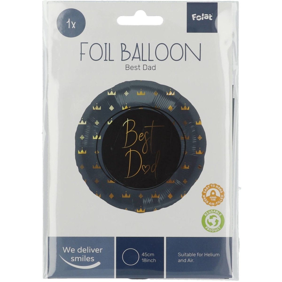 Folieballon Best Dad Blauw - 45 cm. Inhoud: 1 folieballon. Kleur: Blauw. Bijvoorbeeld te gebruiken tijdens de volgende feestgelegenheid/feestgelegenheden: Vaderdag. Deze folieballon is 18 inch/45 cm. Het artikel is gemaakt van folie.