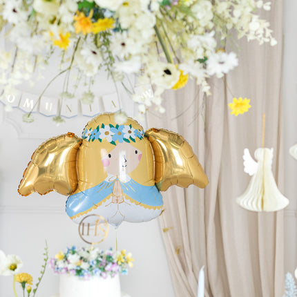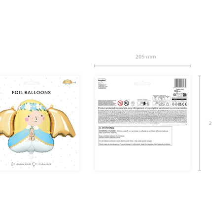 Folieballon Angel, kleurenmix, afmetingen voor opblazen ca. 103 x 58 cm (40,5 x 23''), afmetingen na opblazen ca. 77 x 45 cm (30 x 18''). Op te blazen met lucht en helium. De set is inclusief een rietje.