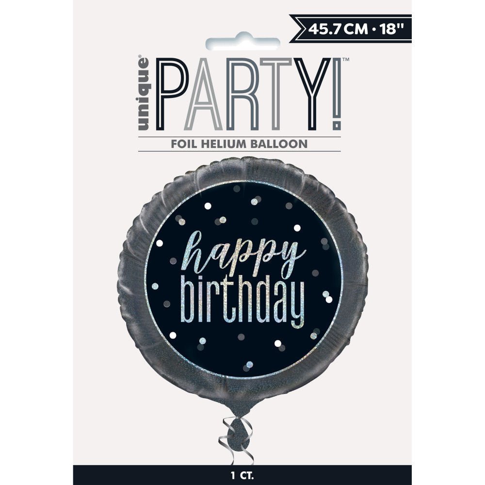 Helium Ballon Happy Birthday Glitter Zwart 45cm leeg