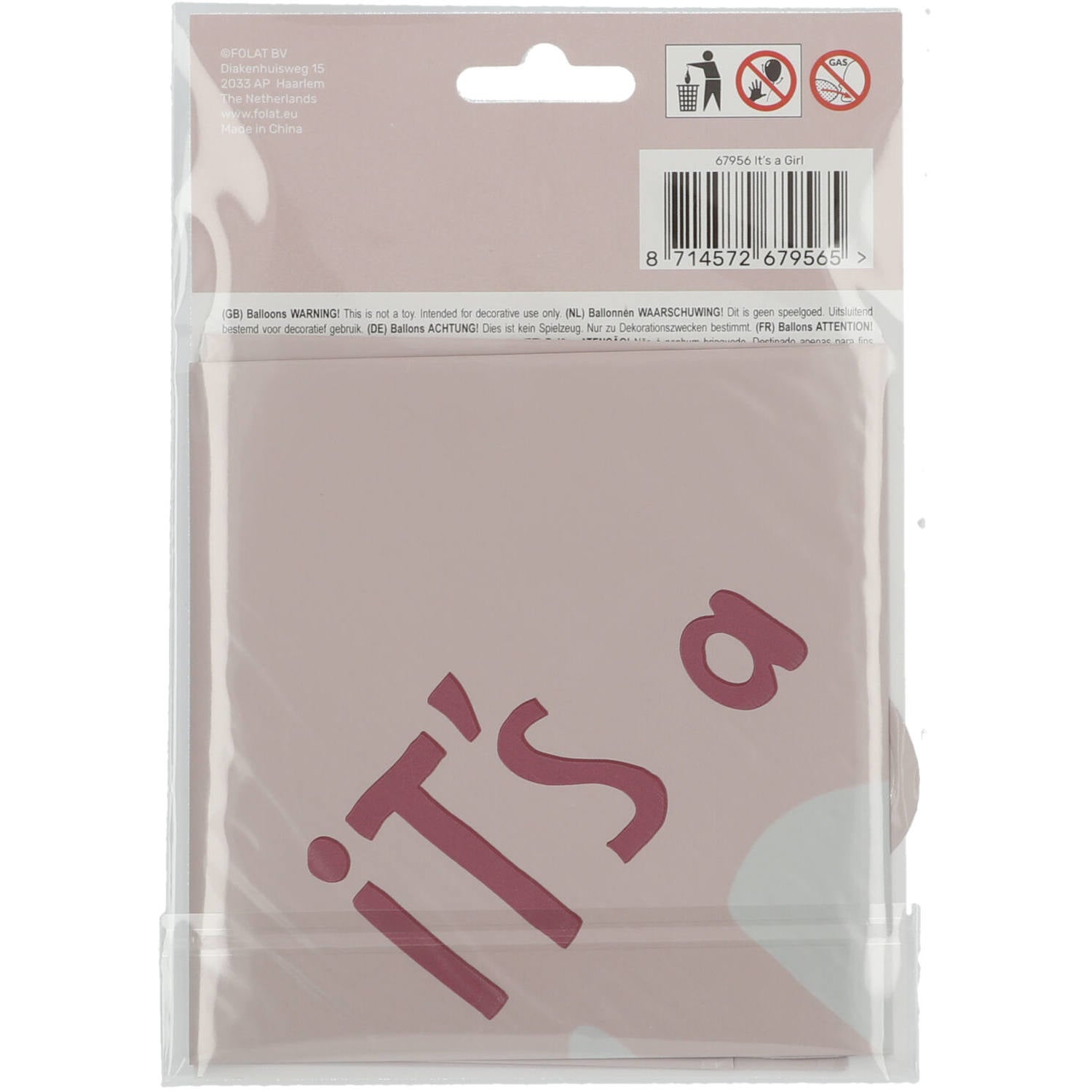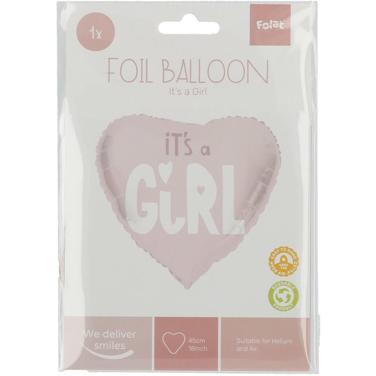 Helium Ballon Hart It'S A Girl Roze Leeg 45cm