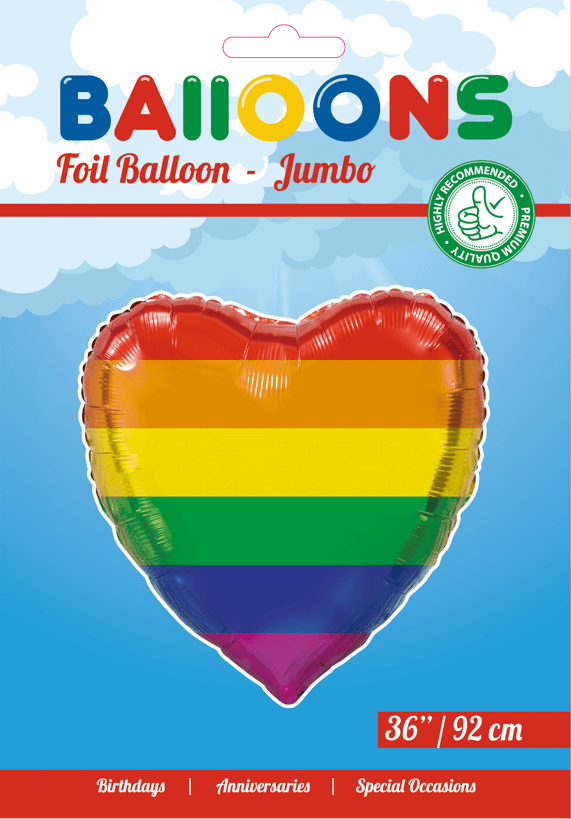 Helium Ballon Hart Regenboog XL Leeg 92cm