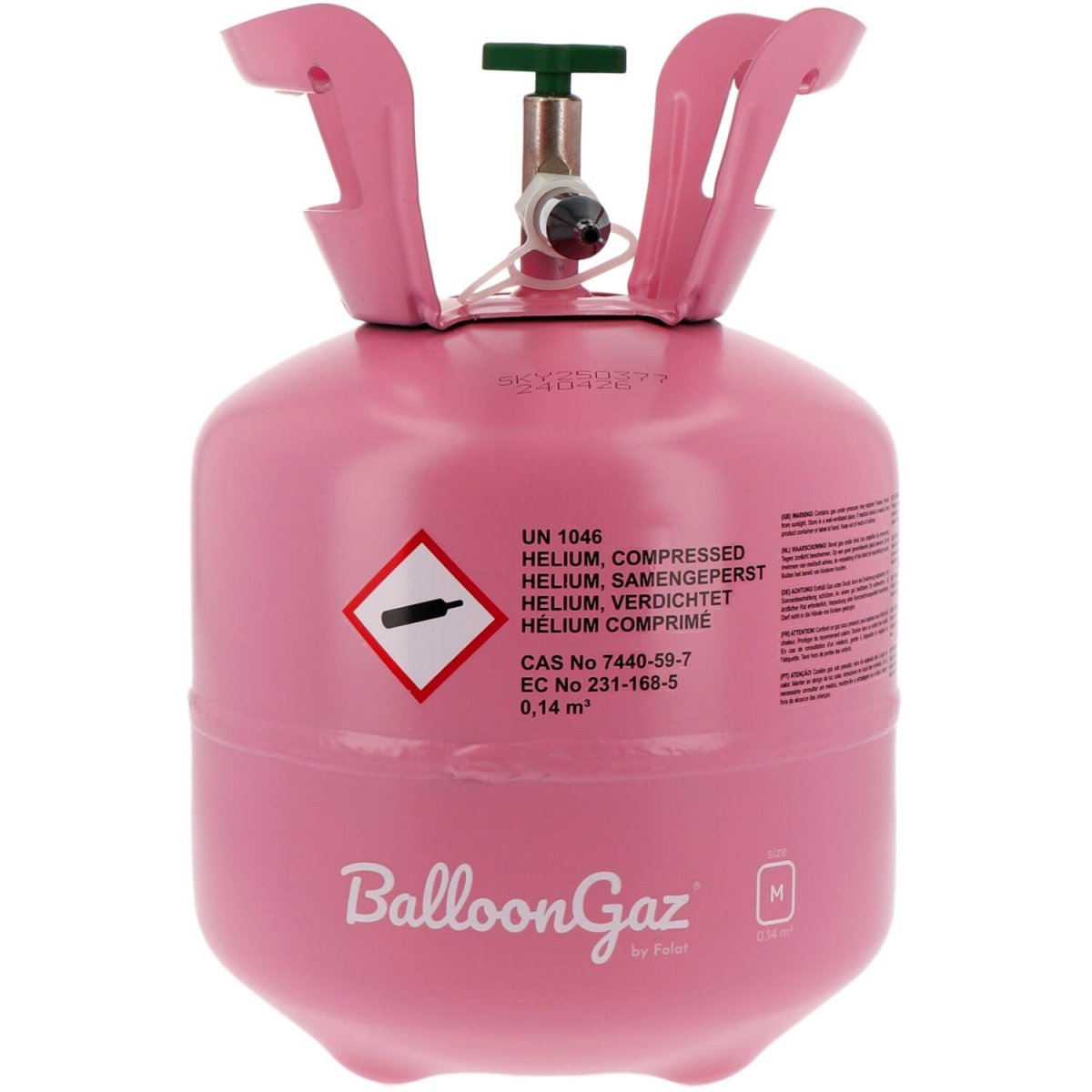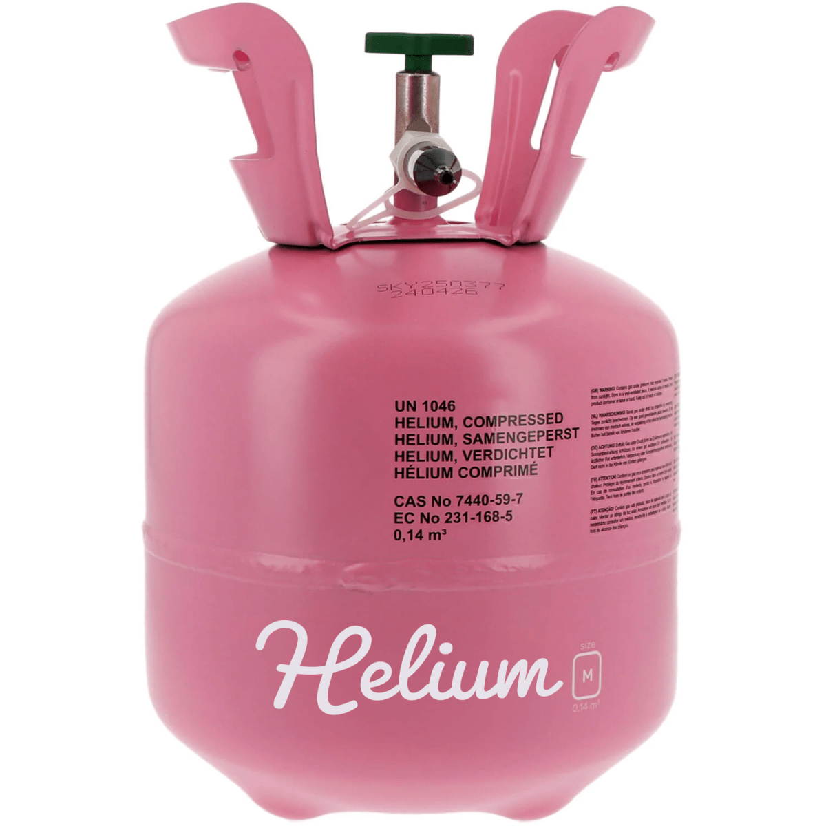 Gebruik: heliumtank (niet herbruikbaar) met vulventiel exclusief ballonnen en lint
