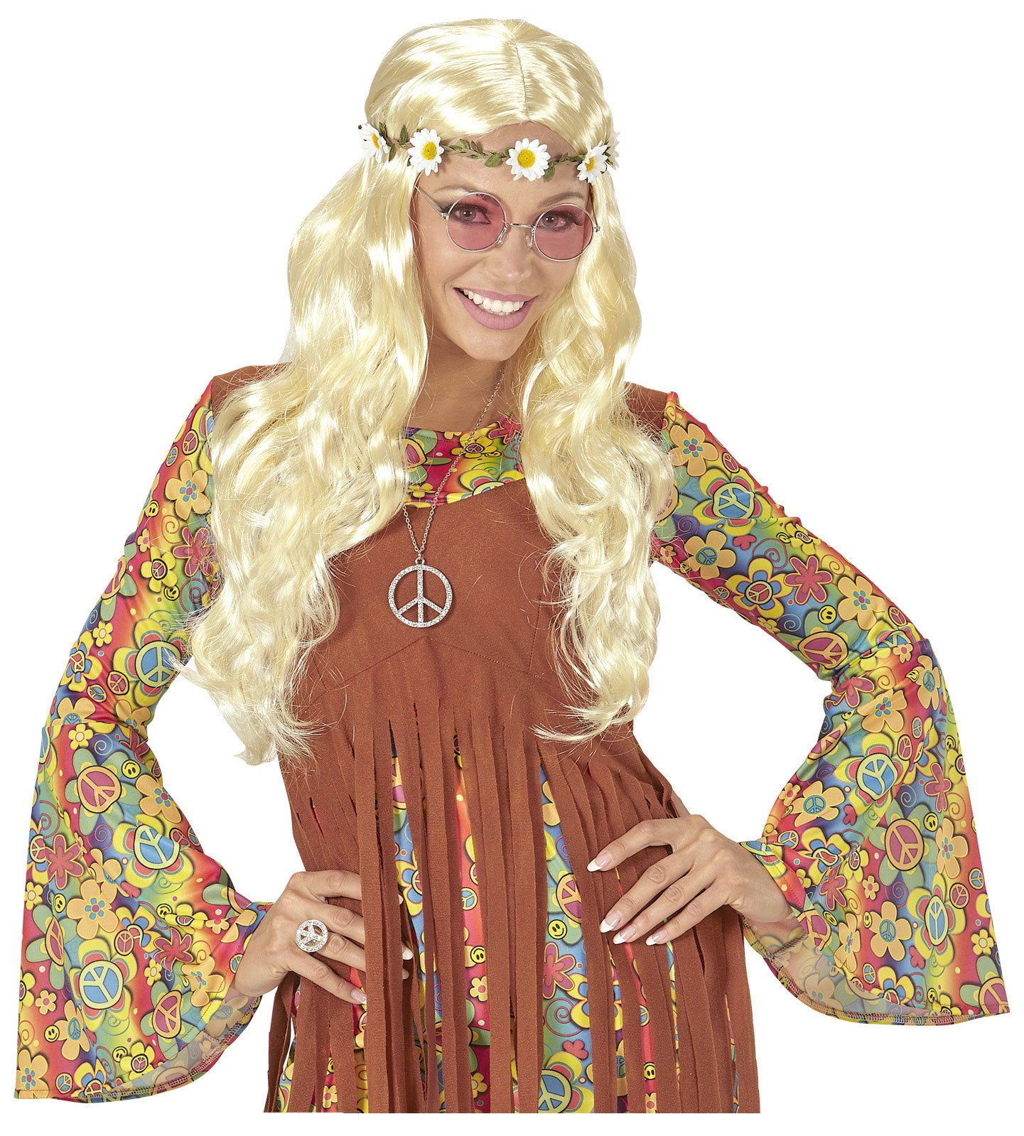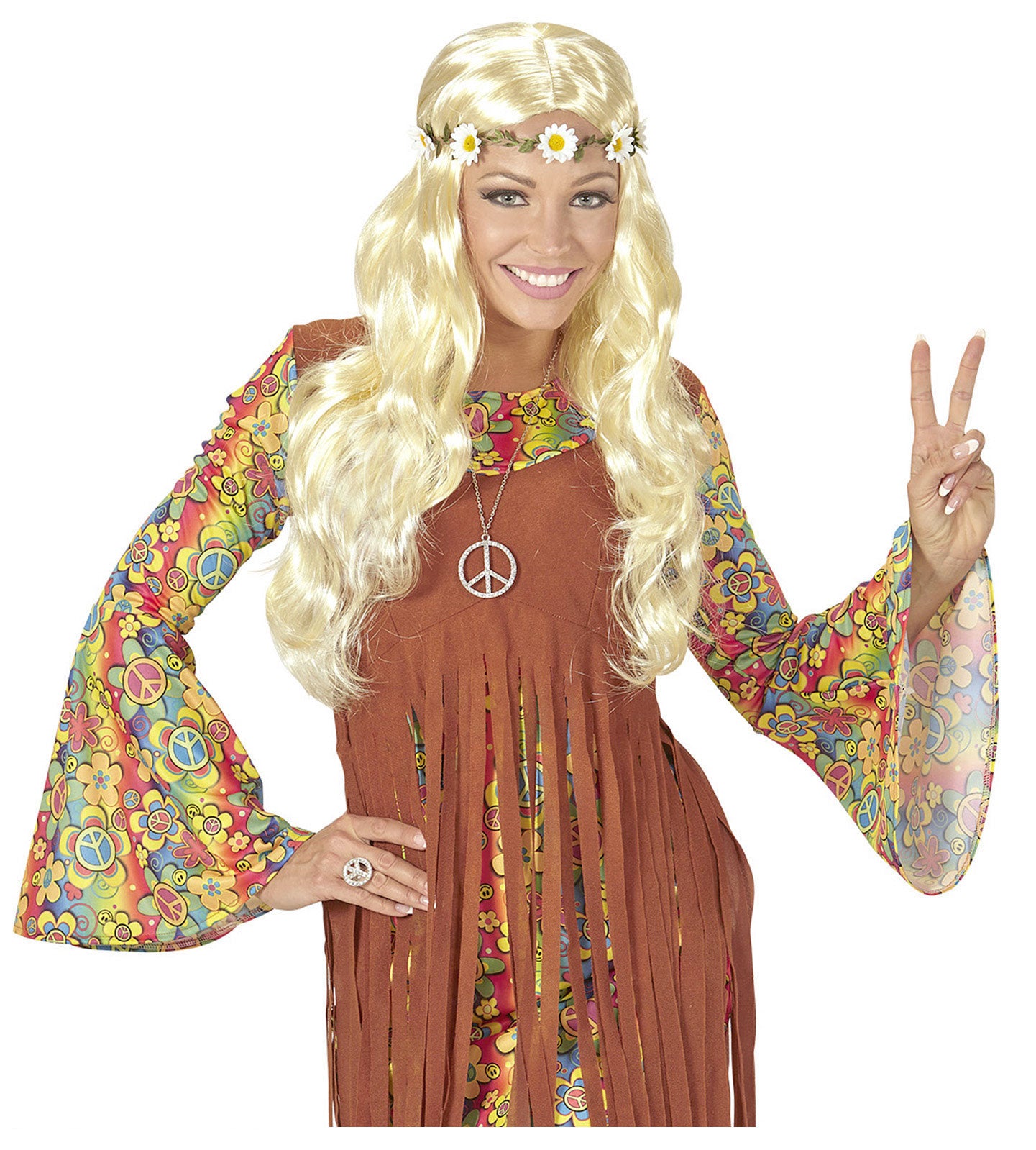 Hippie 60S Pruik Blond Met Bloemen Haarband