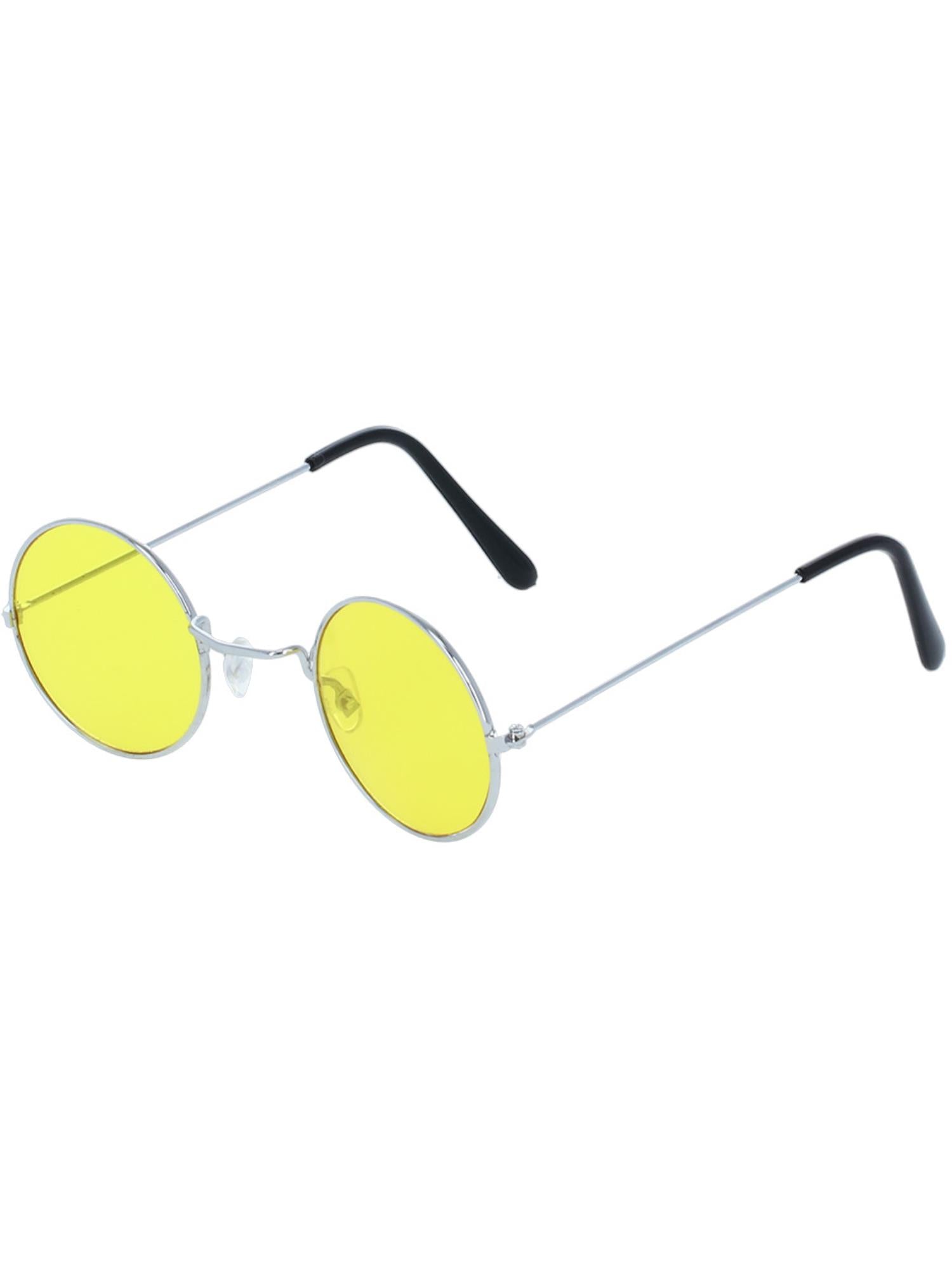 Deze gele hippie bril is een vrolijk en opvallend accessoire voor carnaval, themafeesten en jaren 60/70-feesten. Perfect om een echte flowerpower-look compleet te maken.