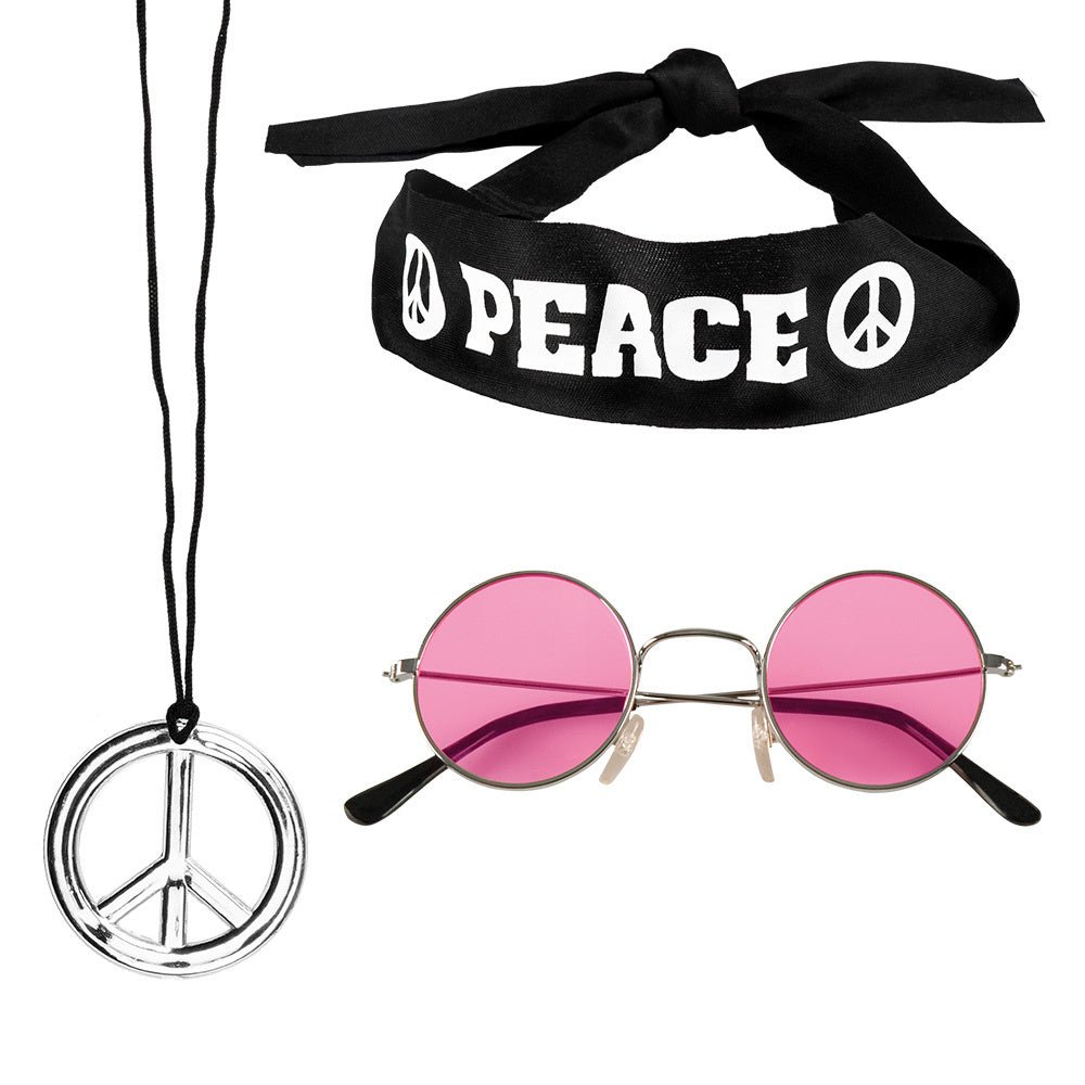 Inhoud: 1 hippie bril, 1 hippie ketting en 1 peace hoofdband