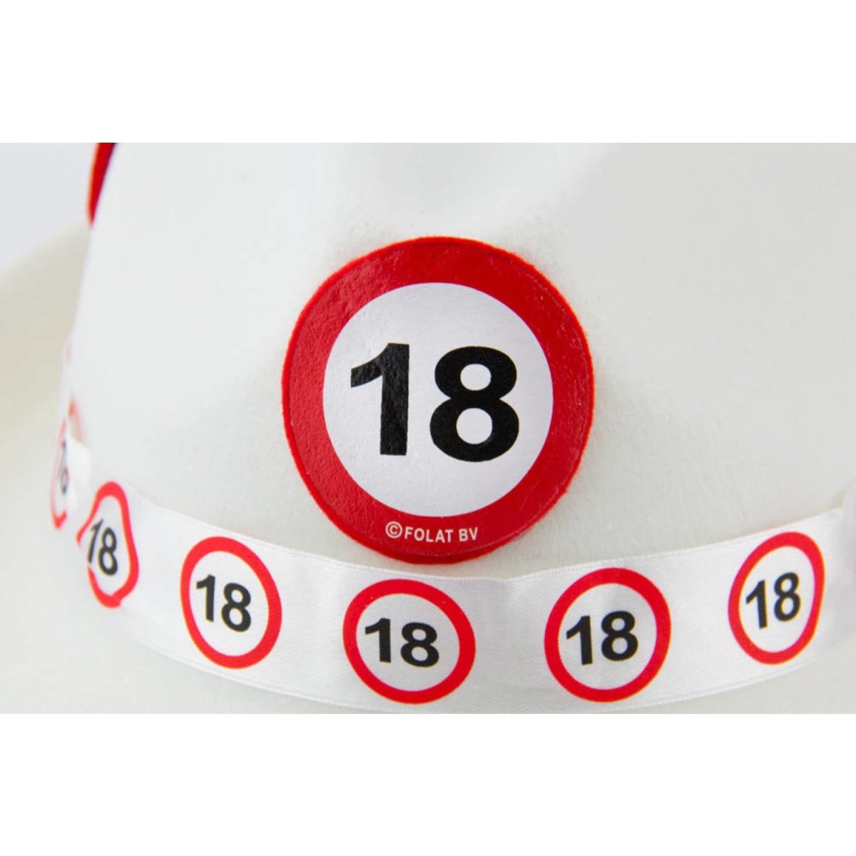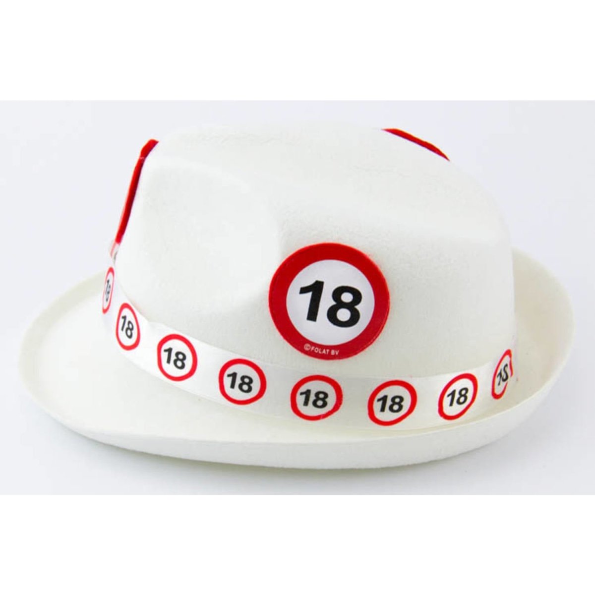 18 Jaar Wit Trilby Hoedje Verkeersbord. Inhoud: 1 hoed, kleur: Wit. Bijvoorbeeld te gebruiken tijdens de volgende feestgelegenheid/feestgelegenheden: Carnaval, Themafeest, Halloween. Deze hoed is 23 cm breed en 37cm hoog. Het artikel is gemaakt van polyester.