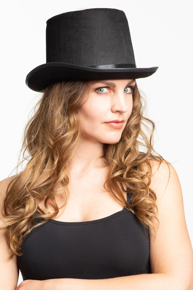 Deze zwarte hoge hoed van vilt is een klassiek en stijlvol accessoire voor carnaval, themafeesten en verkleedpartijen. Perfect om een chique of mysterieuze outfit compleet te maken.