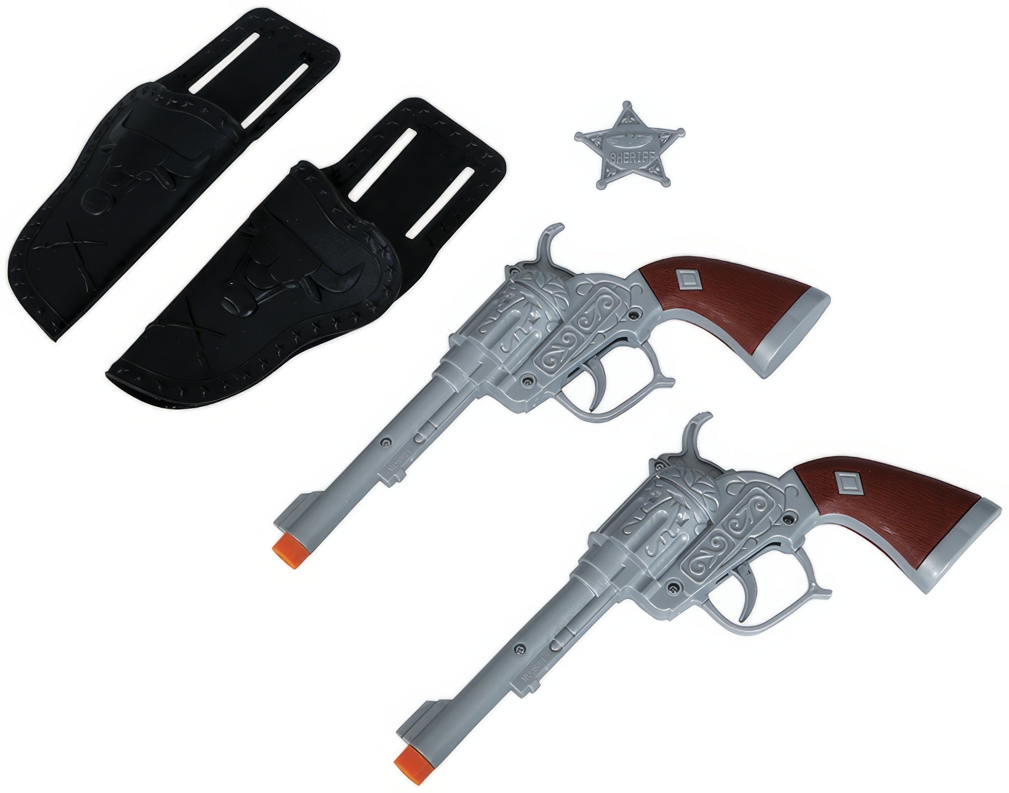 Inhoud: Riem, holster, pistool - Kleur: Zwart, Zilver - Brandvertragend: Ja - Materiaal: Polyester, Pvc