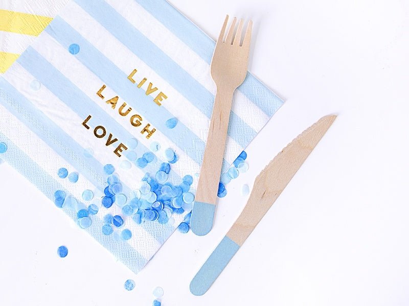Verpakkingsinhoud: Houten Bestek Lichtblauw 16cm 18 delig