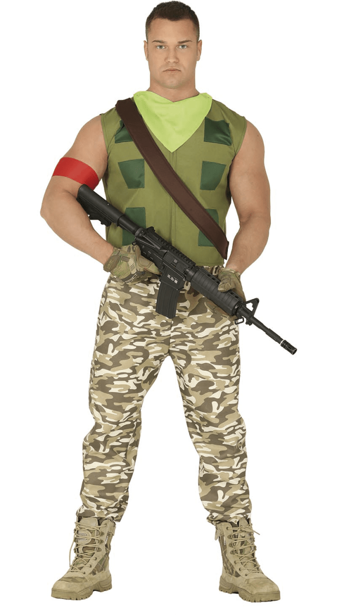 Inhoud: leger vest met rits op de voorkant, sjaal, riem, broek met elastiek op de heupen en een armband