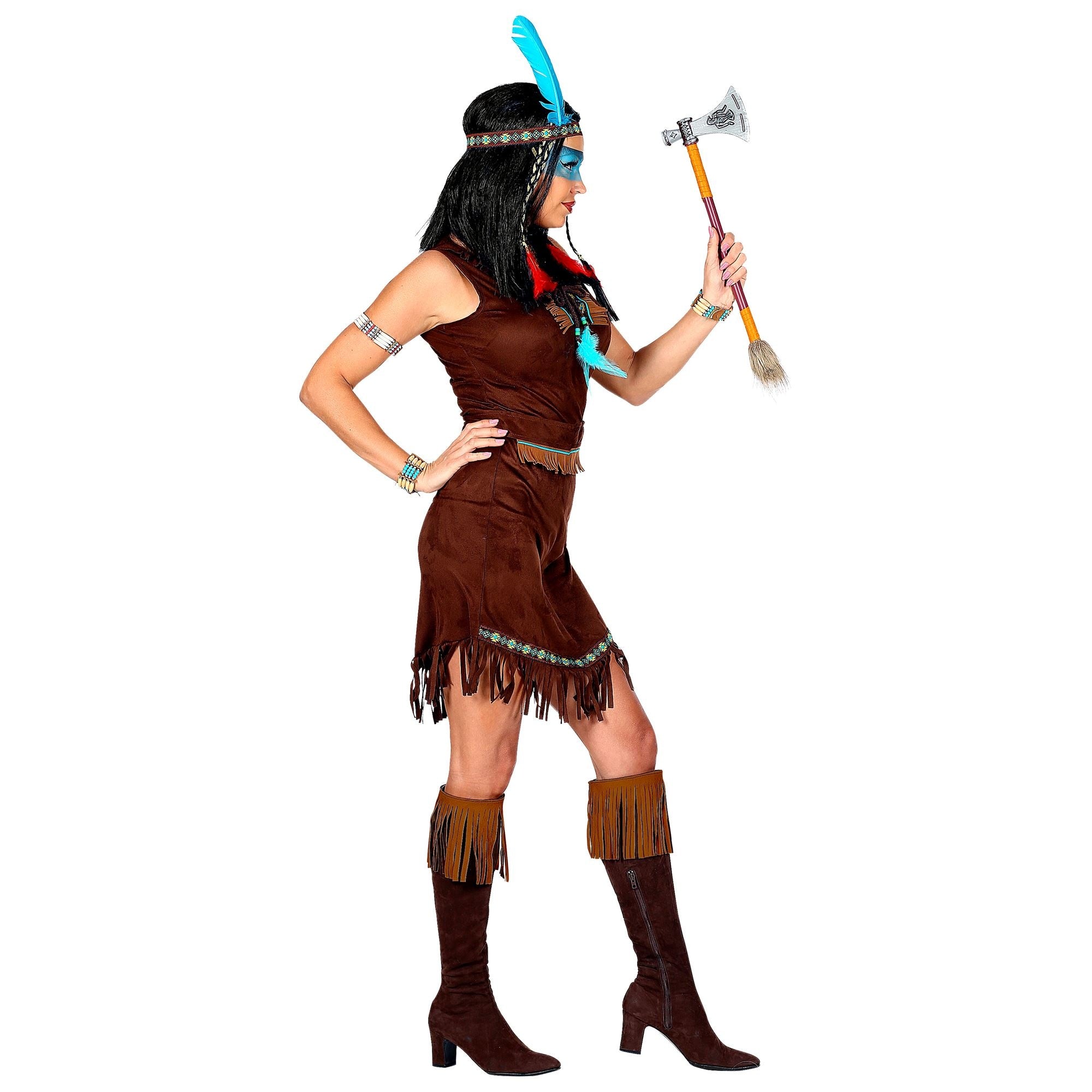 Omschrijving: indiaanse jurk, riem, hoofdband met veer