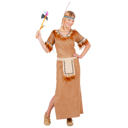 Omschrijving: mohawk indianenjurk, schort, hoofdband met veer
