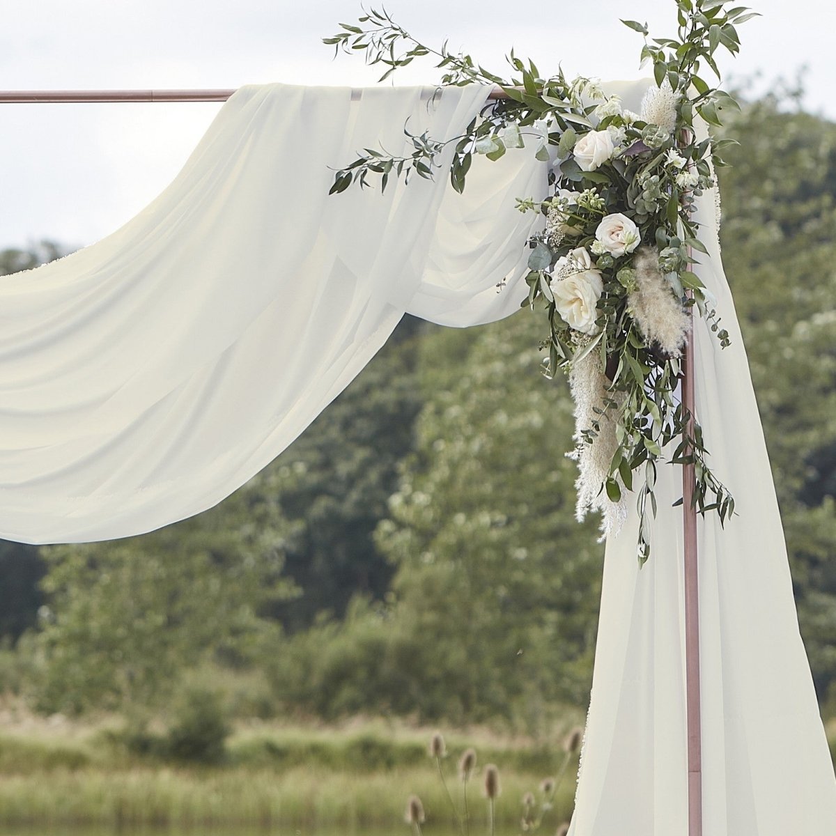 Voor de wow-factor kunt u deze prachtige draperie ophangen om uw feest nog luxueuzer te maken. Deze bruiloftdecoratie is zo veelzijdig en kan elke ruimte volledig transformeren, of het nu gaat om uw ceremonie of receptie.