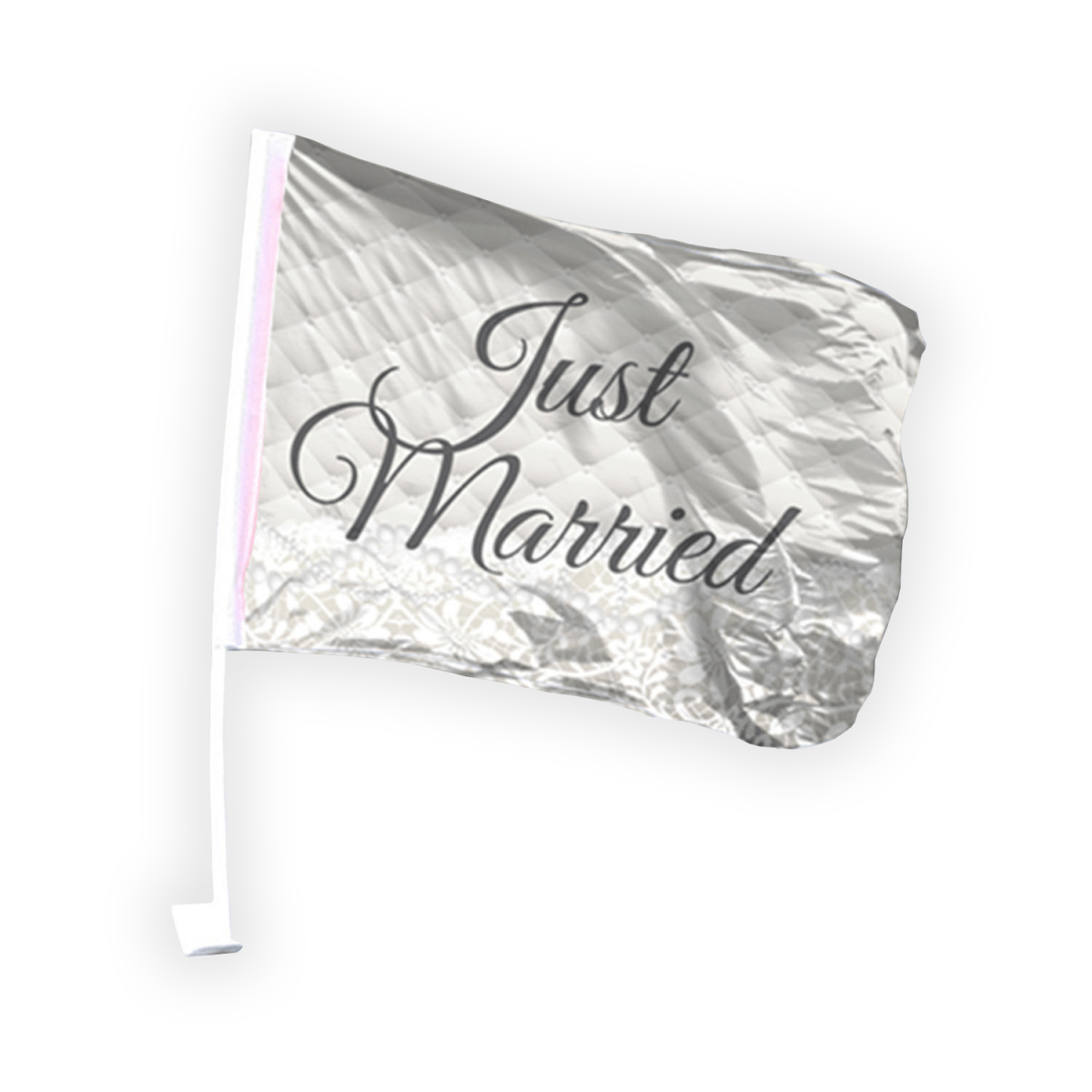 Autovlag Just Married Bruiloft - 2 stuks. Inhoud: 2 vlaggen. Bijvoorbeeld te gebruiken tijdens de volgende feestgelegenheid/feestgelegenheden: Bruiloft. Afmetingen van dit artikel: 45 x 30 cm. Het artikel is gemaakt van plastic.