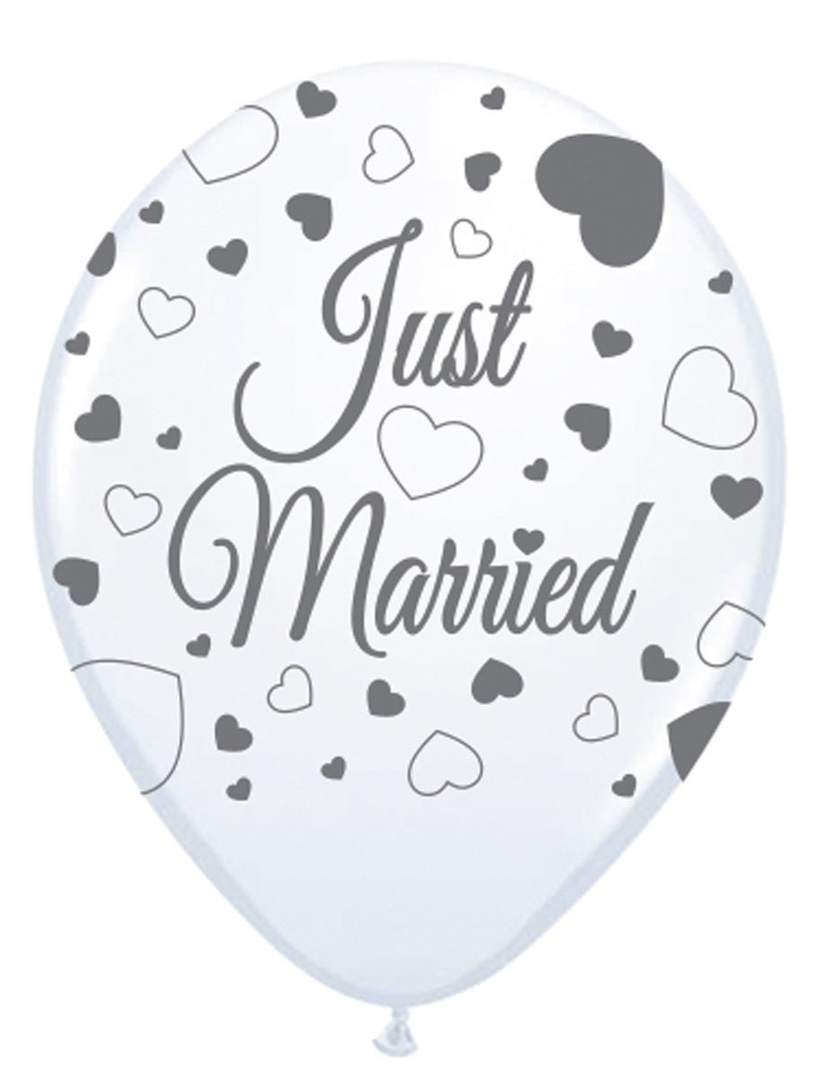 Just Married Trouwballonnen - 8 stuks. Inhoud: 8 latex ballonnen. Bijvoorbeeld te gebruiken tijdens de volgende feestgelegenheid/feestgelegenheden: bruiloft. Elke ballon is 12 inch/30 cm. Het artikel is gemaakt van latex.