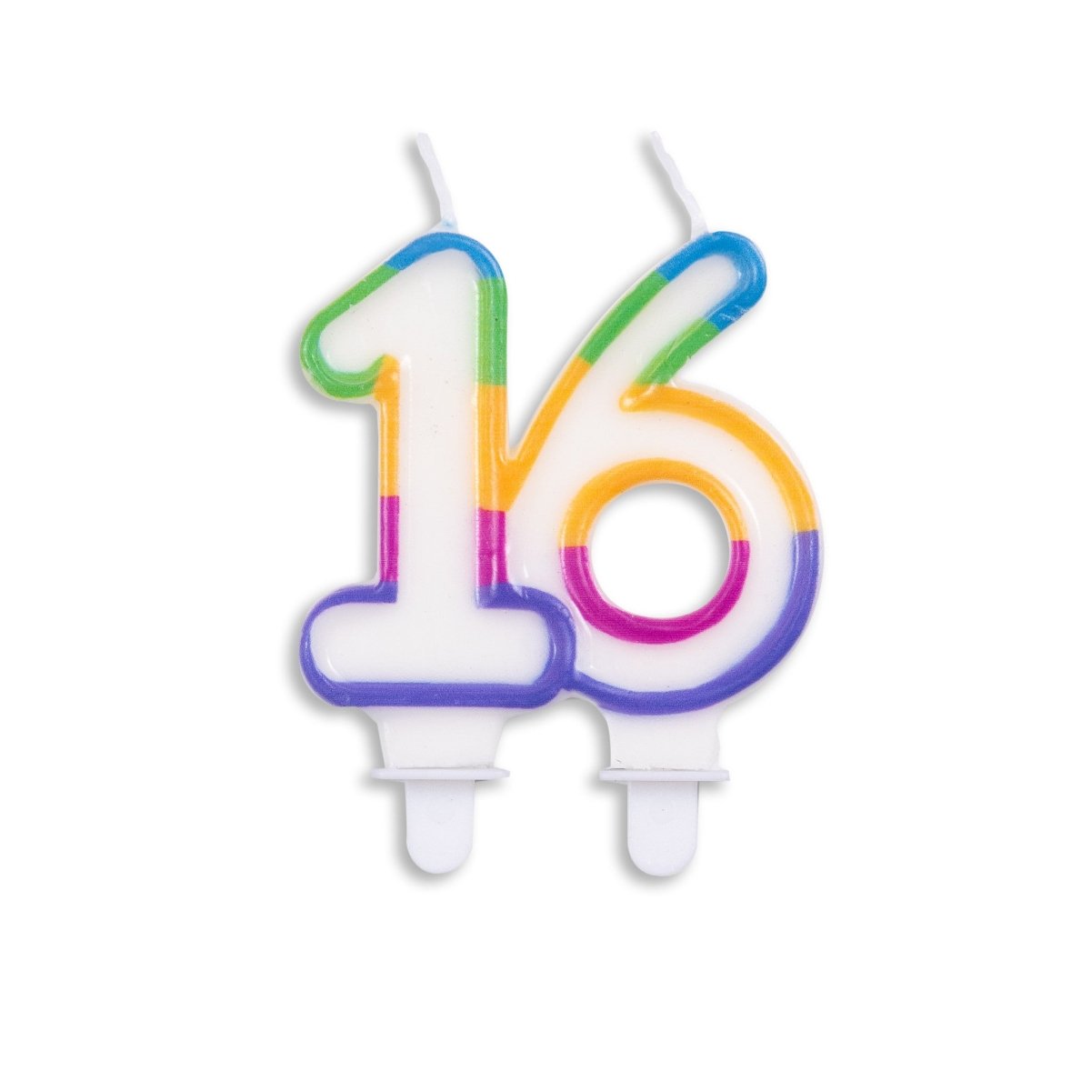 Verpakkingsinhoud: Kaars 16 Jaar Gekleurd 7cm