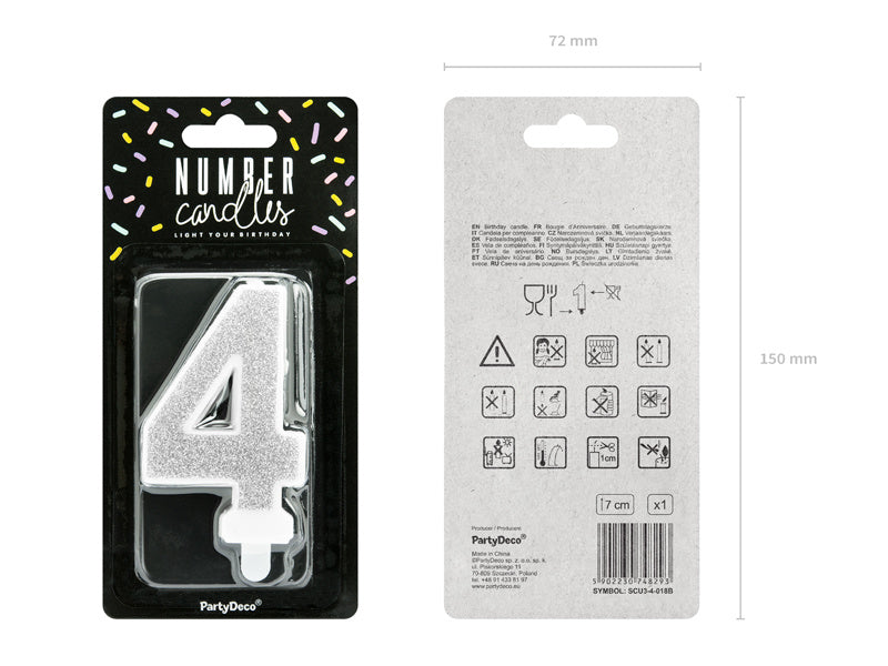 Kaars 4 Jaar Zilver 7cm