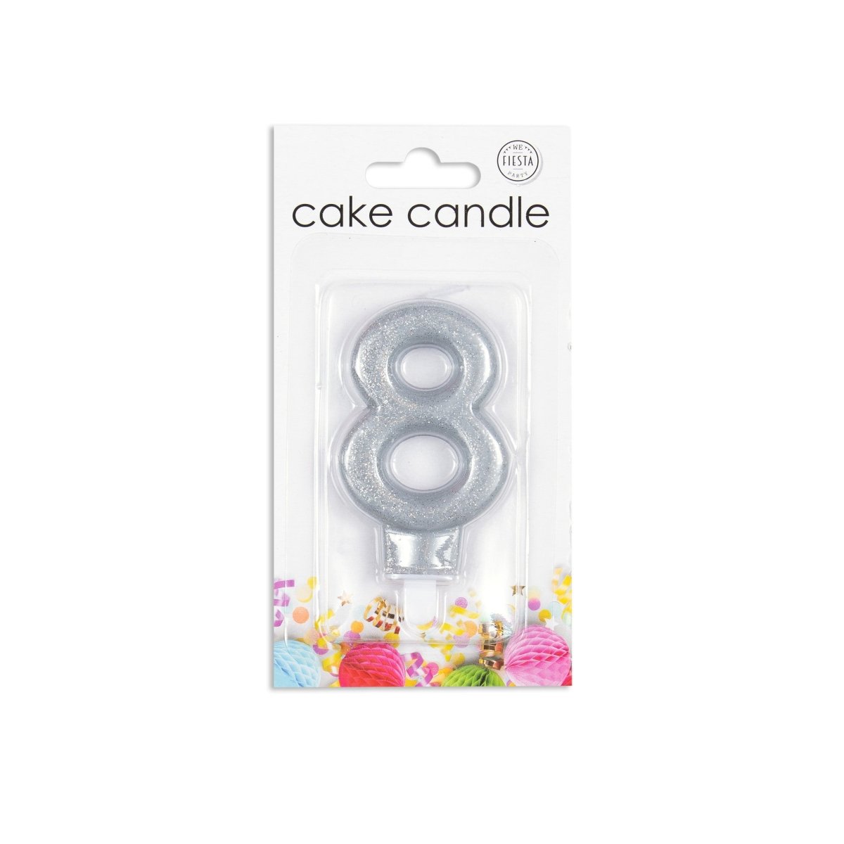 Kaars 8 Jaar Zilver Glitter 7cm