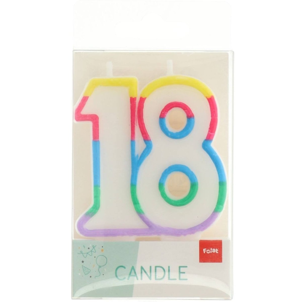 Kaars Colorblock Cijfer 18, 7,5 x 6 cm. Inhoud: 1 kaars. Kleur: Meerkleurig. Bijvoorbeeld te gebruiken tijdens de volgende feestgelegenheid/feestgelegenheden: Verjaardag. Deze kaars is ongeveer 7,5 x 6 cm groot. Het artikel is gemaakt van wax.