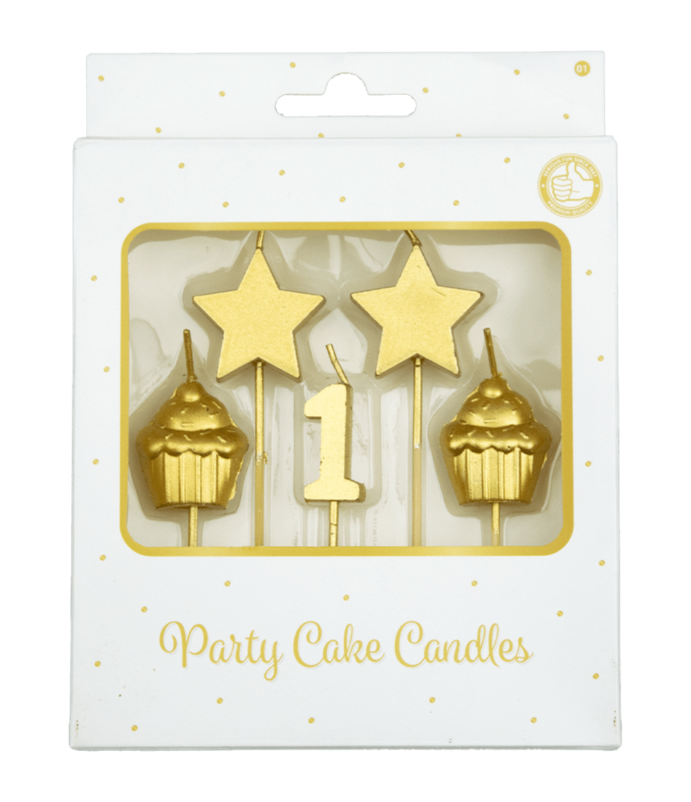 Kaarsjes 1 Jaar Cupcake Goud 17,5cm
