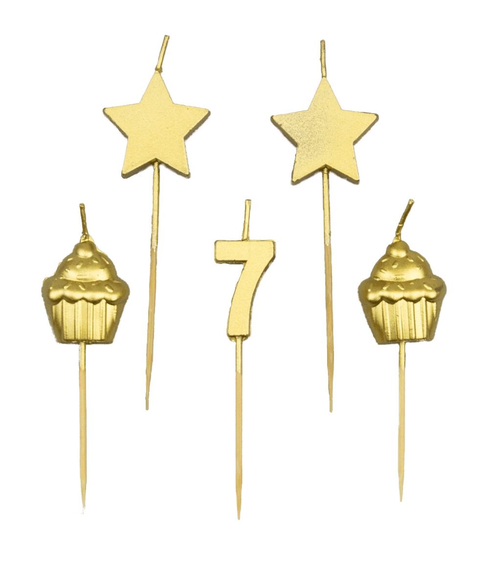 Kaarsjes 7 Jaar Cupcake Goud 17,5cm
