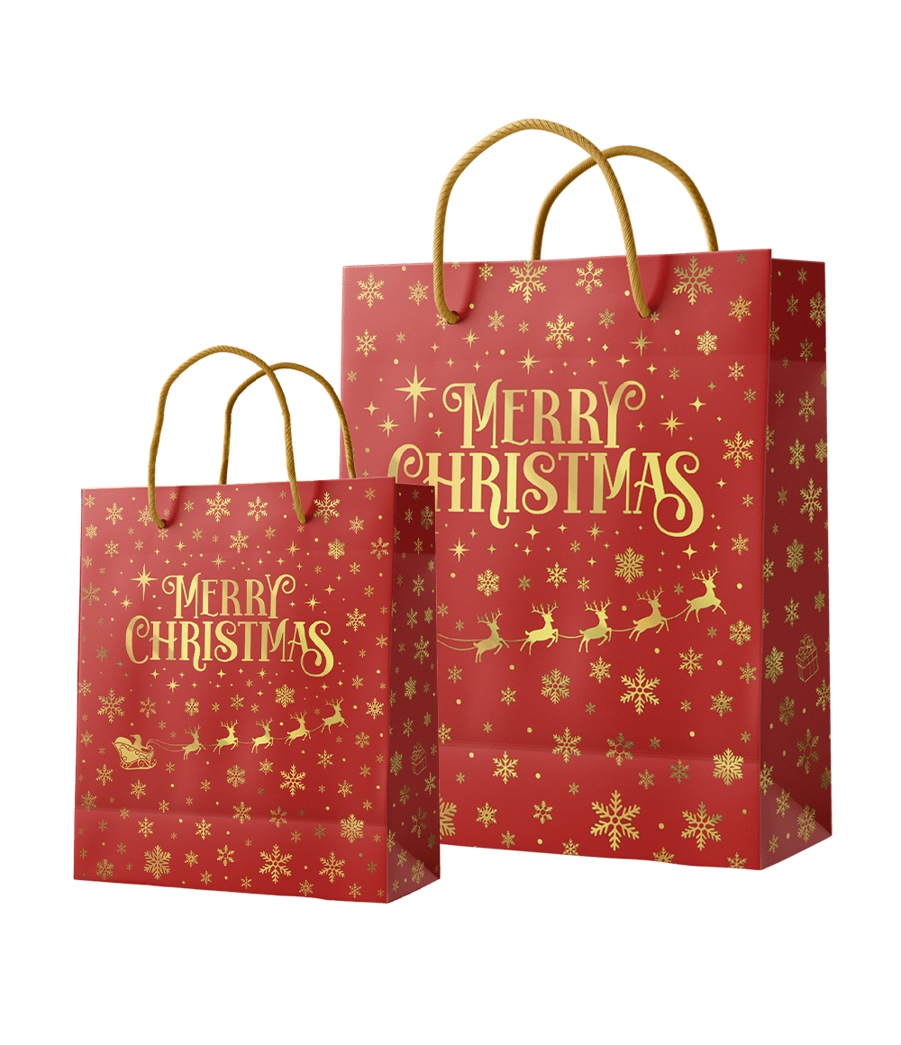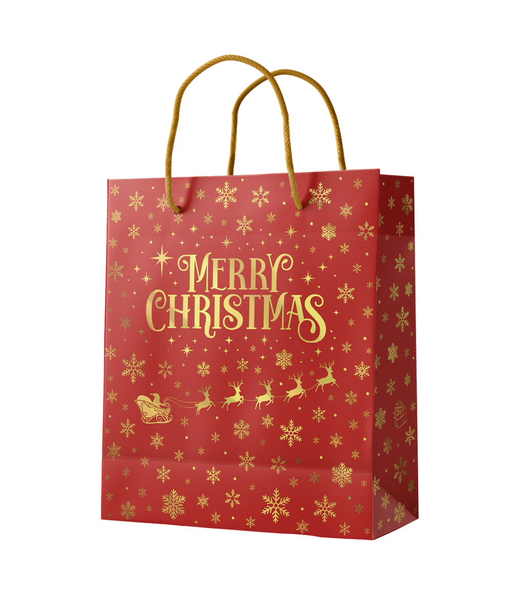 Kerst Cadeautasje Rood Goud Merry Christmas M 21cm