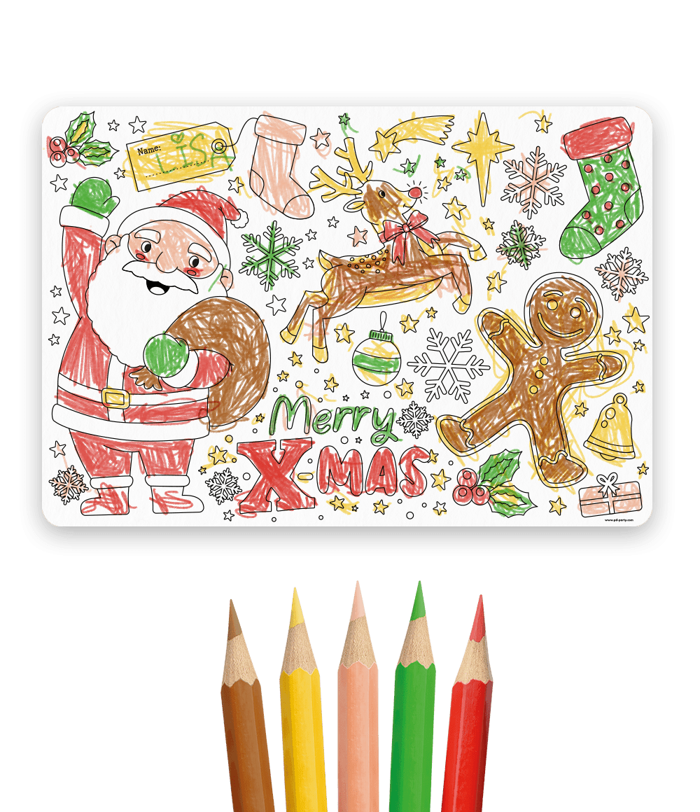 Voeg kleur en creativiteit toe aan het kerstdiner met deze inkleurbare placemats. De placemats zijn bedrukt met leuke kerstillustraties die kinderen (en volwassenen!) zelf kunnen inkleuren. Zo wordt de feesttafel niet alleen sfeervol, maar ook interactief en gezellig.