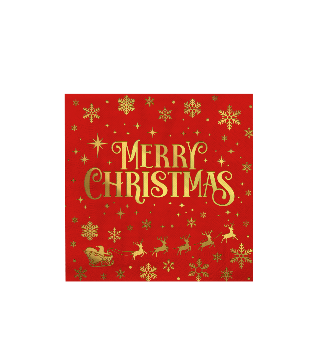 Maak de kersttafel compleet met deze stijlvolle rode servetten met gouden Merry Christmas-opdruk. De servetten zijn gemaakt van papier en voegen direct een feestelijke sfeer toe aan elk kerstdiner, brunch of borrelmoment.