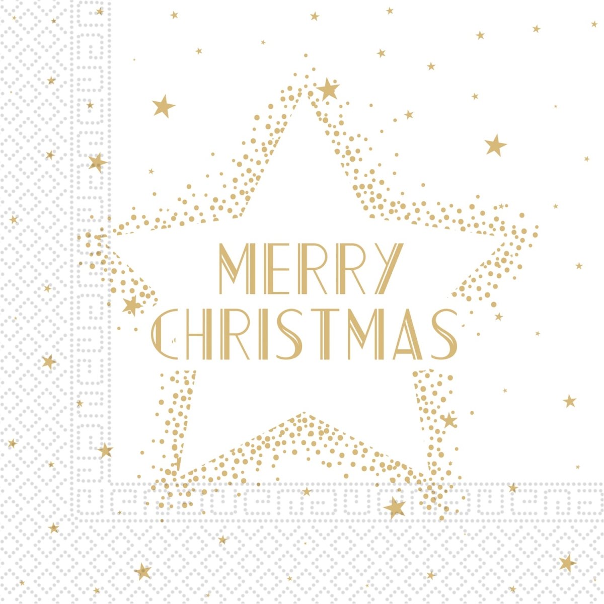 Kerst Servetten Wit Goud Merry Christmas 33cm 20st