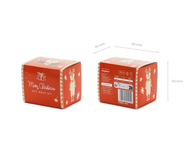 Ministickers Vrolijk Kerstfeest, mix van kleuren. Set bevat rol met lengte ca. 250 cm met 52 stickers in 36 designs en 16 labels in 8 designs. Materiaal: Papier niet gecoat met folie en niet gelakt - 95%, Katoen - 5%.