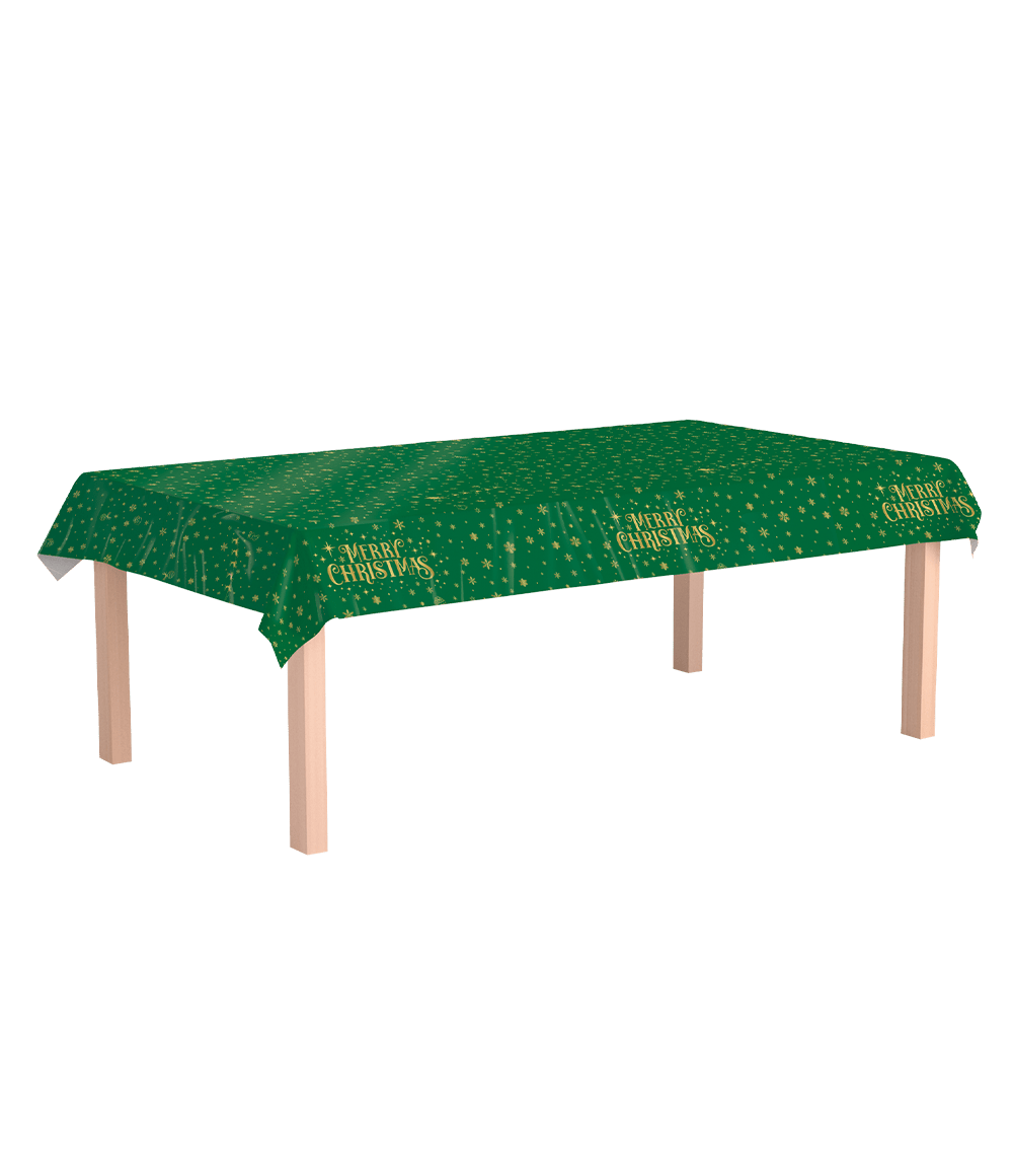 Kerst Tafelkleed Groen Goud Merry Christmas 2,74m