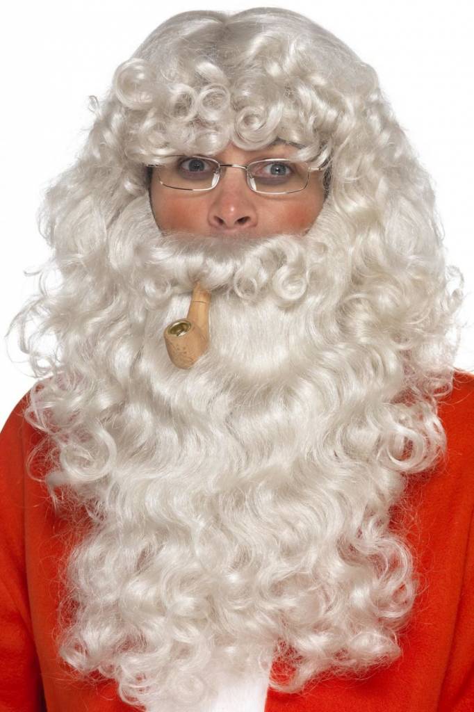 Inhoud: kerstman baard,pruik, bril en pijp
