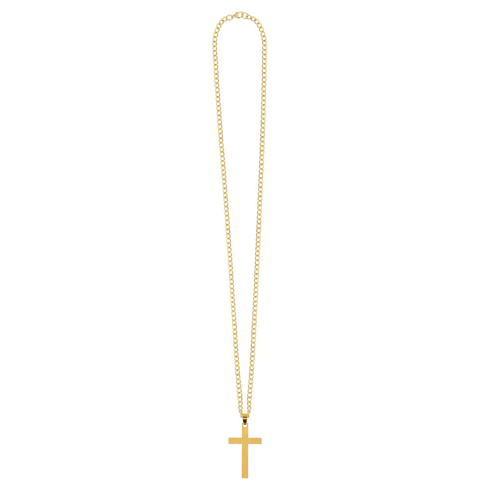 Breng een vleugje spirituele gratie in je verkleedlook met deze goudkleurige ketting met kruis. Het perfecte accessoire voor bij je priester of non verkleedkostuum