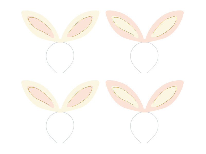 Set van 4 hoofdbans in de vorm van konijnenoren, mix van kleuren. Afmetingen ca. 12,5 x 29 cm. Doe-het-zelf product. (1 pkt / 4 stuks)