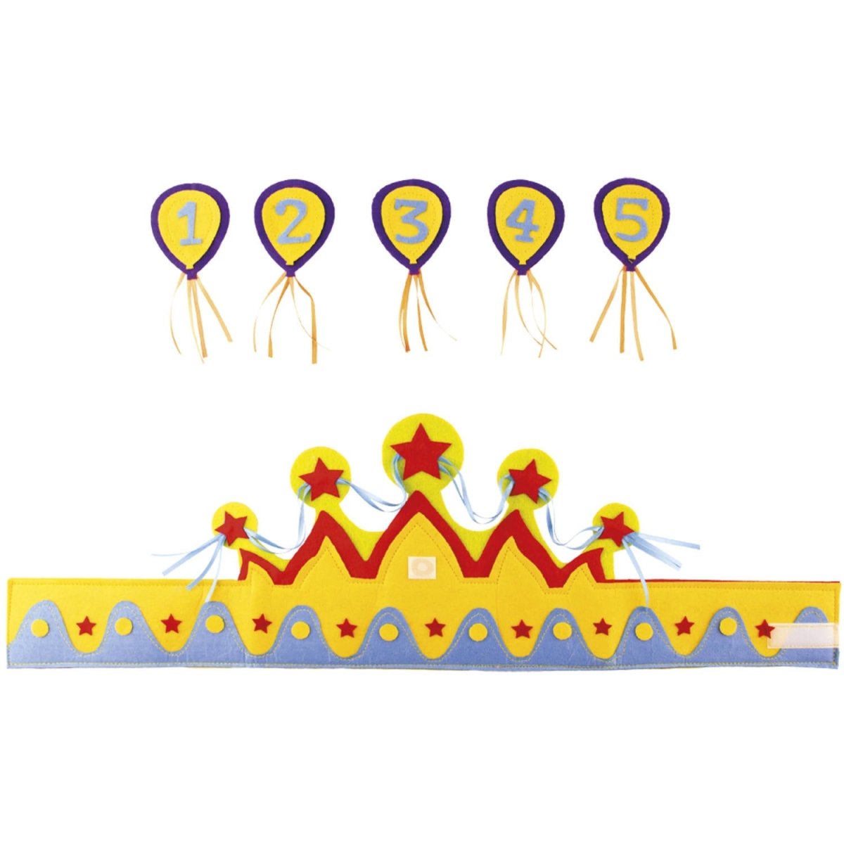 VerjaardagsKroon Leeftijden 1 tot 5 Jongen. Inhoud: 1 kroon. Bijvoorbeeld te gebruiken tijdens de volgende feestgelegenheid/feestgelegenheden: Kinderfeestje. De kroon heeft 5 cijfers die op de kroon kunnen (1, 2, 3, 4 en 5). Het artikel is gemaakt van kunststof.