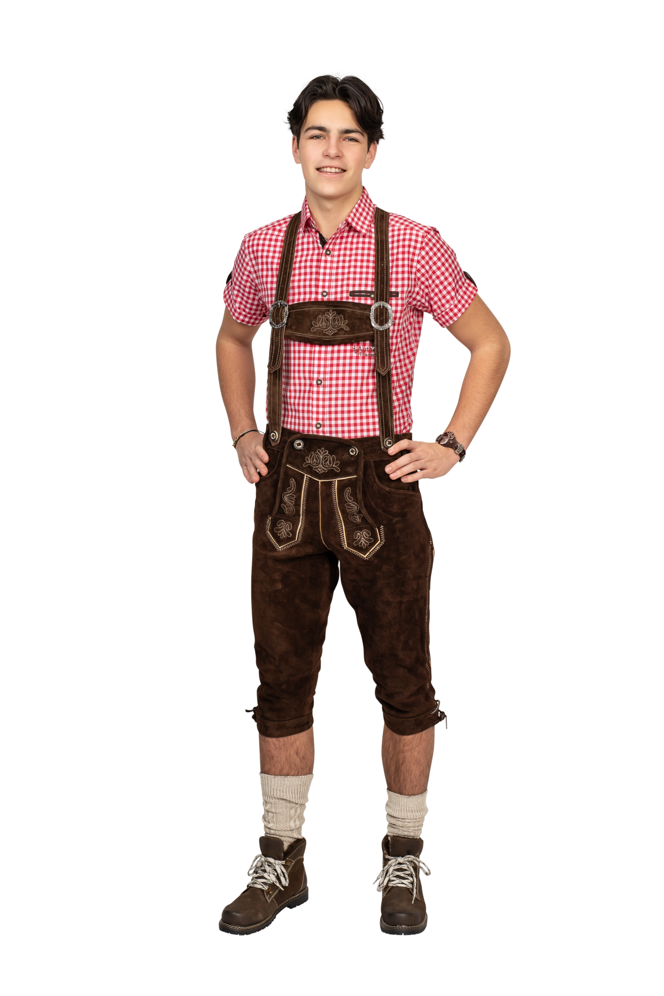 Lederhose voor heren. Super kwaliteit leer. Uitgebreid traditioneel borduurwerk diverse voor- en achterzakken en echte hertshoorn beenknopen.. Volledig gevoerd. Super pasvorm!