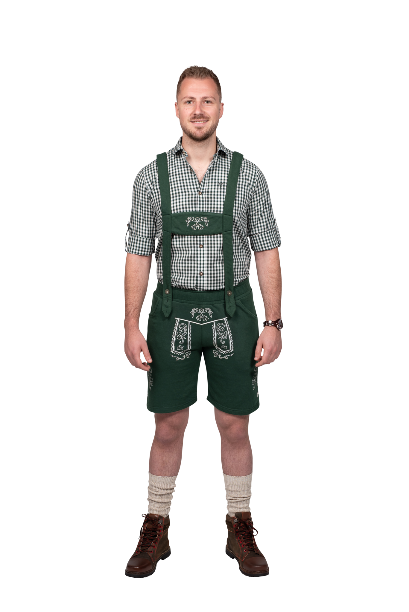Traditionele broek voor heren, kort, met borduursel print en verstelbare H-bandjes.