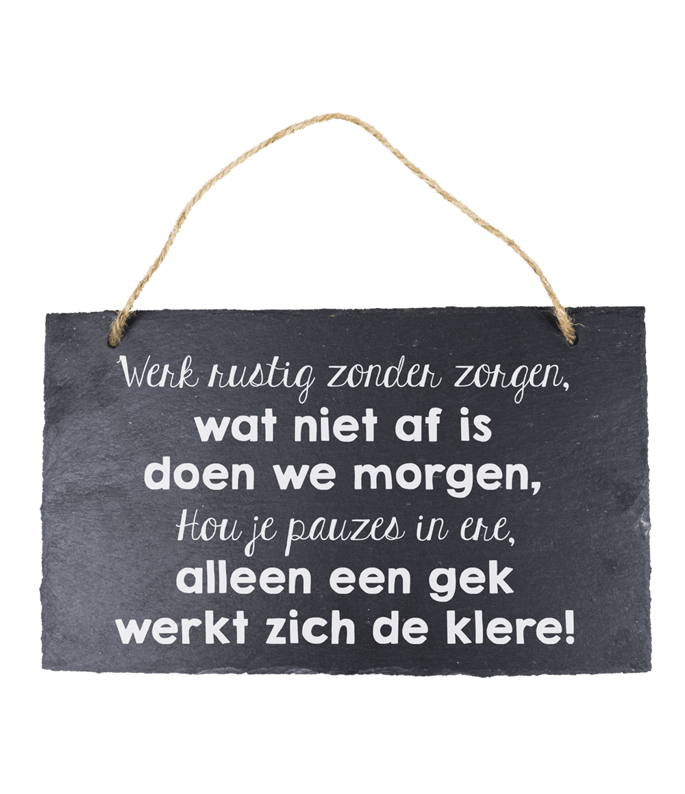 Leisteen Bordje Rustig Werken 25cm